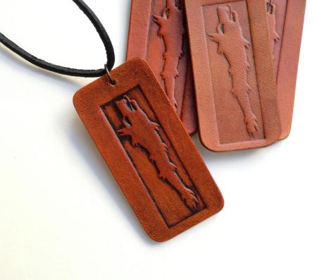 Pandantiv din piele cu motivul Lupului Dacic – o bijuterie manuală elegantă