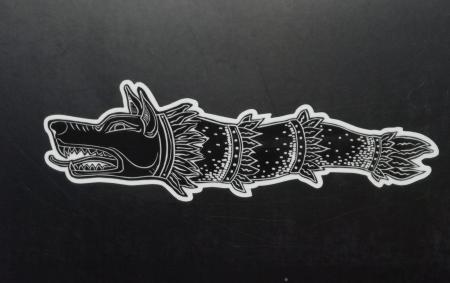 Autocolant decupat pe contur, motiv decorativ lupul dacic, realizat din material rezistent tip PVC.